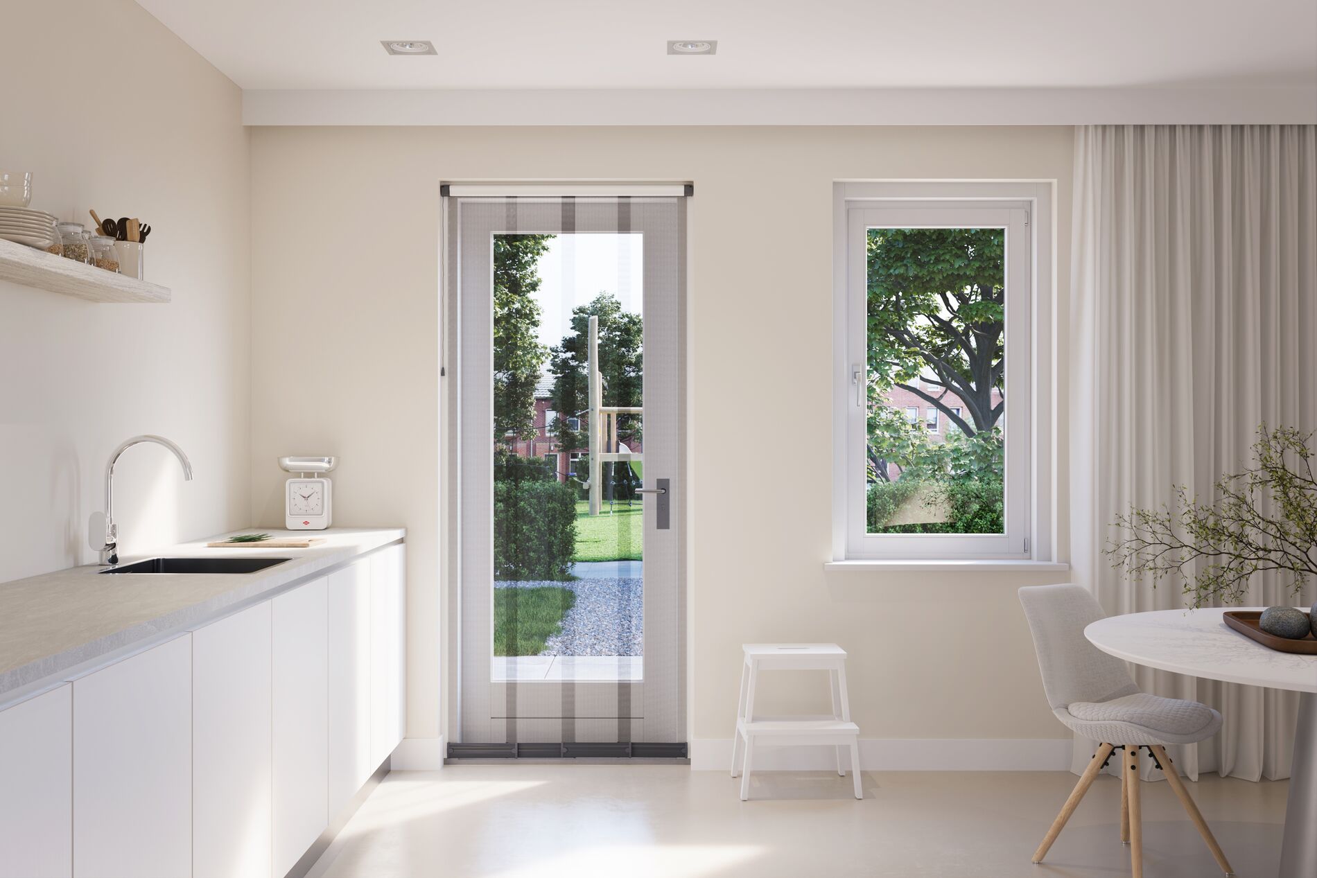Verschuifbare gaaslamellen met koordbediening voor vrije doorgang