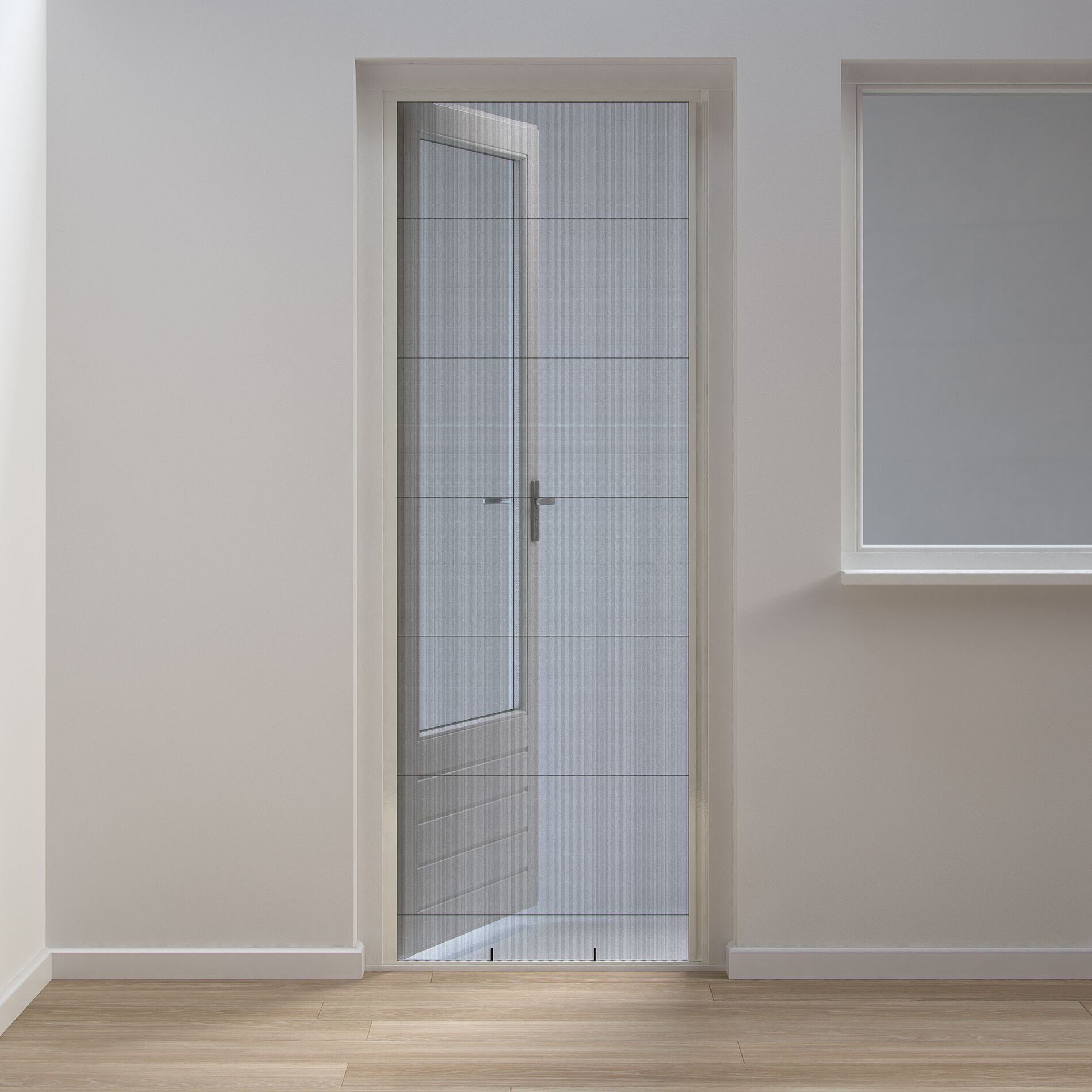 Stevige aluminium profielen met zwart geplisseerd polyester gaas